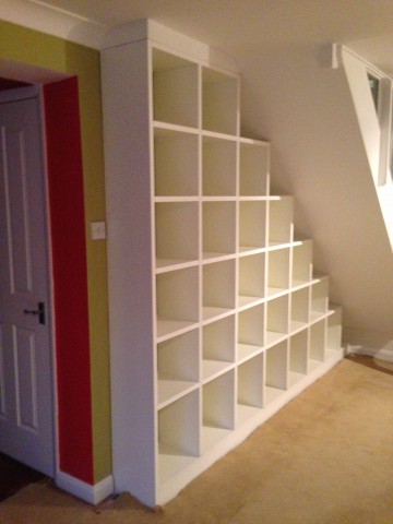 Understairs box shelving